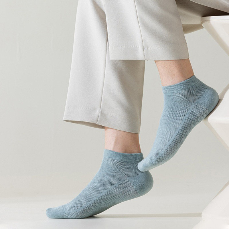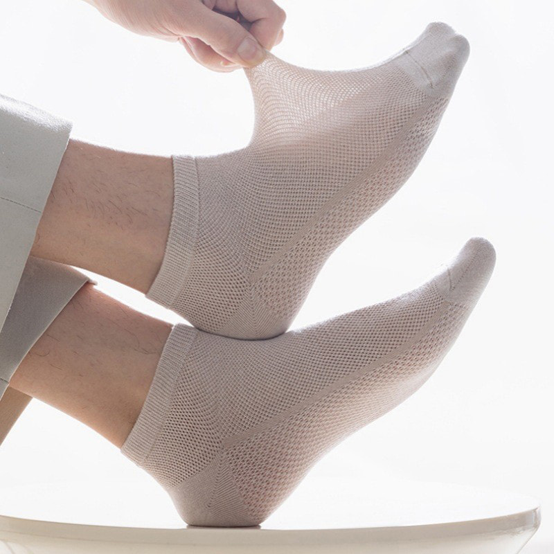 Tính năng nổi bật của sản phẩm này là thiết kế lưới trên SCORTEP, giúp tăng cường đáng kể độ thở của tất và giữ cho bàn chân khô trong thời tiết nóng. Đồng thời, thiết kế lưới cũng giúp nhanh chóng hấp thụ mồ hôi và tránh khó chịu ở chân. Là một chiếc tất, thiết kế của nó nhằm mục đích vô hình và dễ dàng để phù hợp với các loại giày và quần khác nhau. Cho dù đó là giày thể thao, giày da hoặc giày bình thường, nó có thể hoàn toàn vừa vặn mà không để lại bất kỳ dấu vết nào, duy trì hình dạng gọn gàng tổng thể. Miệng vớ áp dụng một thiết kế đàn hồi, có thể vừa vặn với mắt cá chân và không dễ dàng trượt ra, đảm bảo sự ổn định và thoải mái trong quá trình đeo. Vật liệu bông tinh khiết kết hợp với thiết kế lưới làm cho đôi tất có hiệu suất hấp thụ mồ hôi tốt, có thể nhanh chóng hấp thụ mồ hôi từ bàn chân và xả nó qua lưới, giữ cho bàn chân khô ráo. Đồng thời, một số sản phẩm cũng có chức năng kháng khuẩn, có thể ức chế sự phát triển của vi khuẩn và giảm sản xuất mùi.